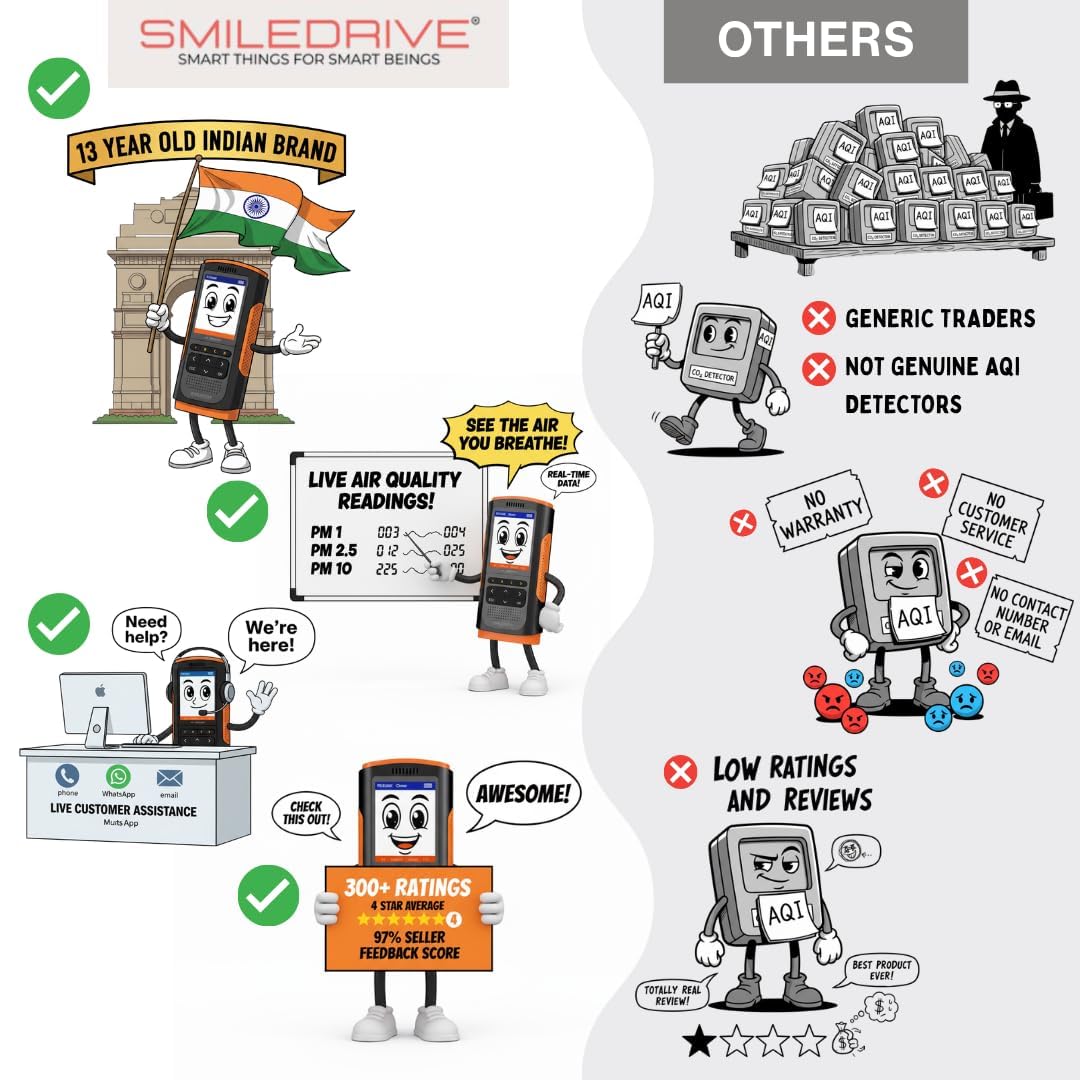 ✅ Lightweight & Portable Design – Ideal air quality monitor for indoor & outdoor use; perfect for homes, offices, cars, and travel.