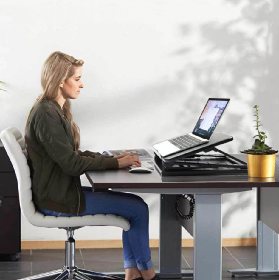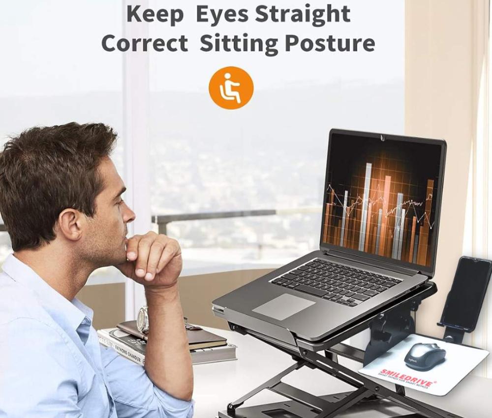 Bring your laptop to the right height and correct angle when you sit. Easily avoid slouching/hunching. Pro tip- Your neck should not bend and the top edge of your laptop screen should align straight with your eyes