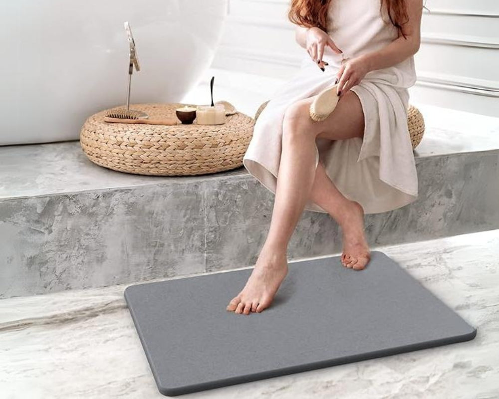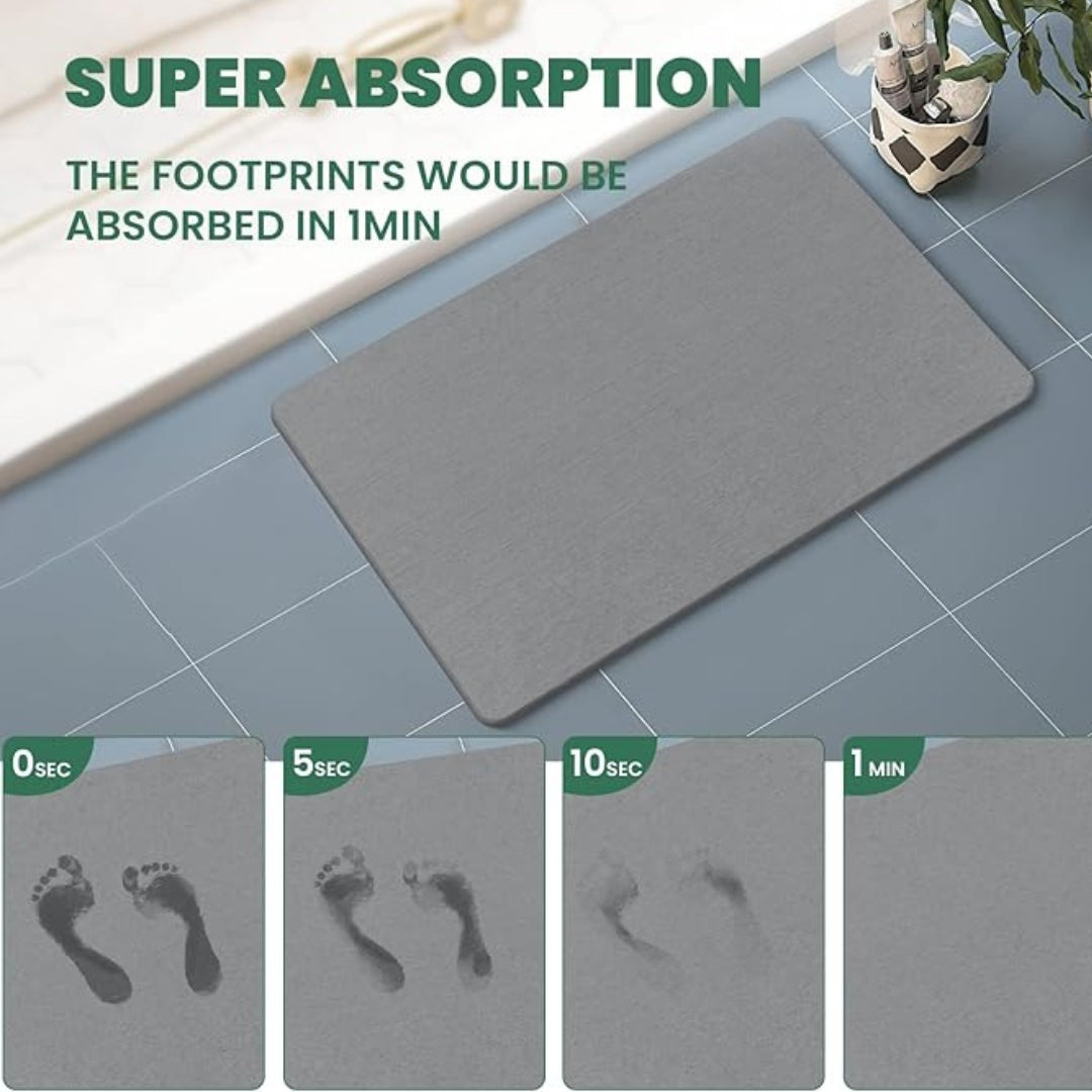 - Ultra-Fast Drying: Made from diatomaceous earth, the mat absorbs water instantly and dries completely within minutes, keeping your bathroom clean and dry.
