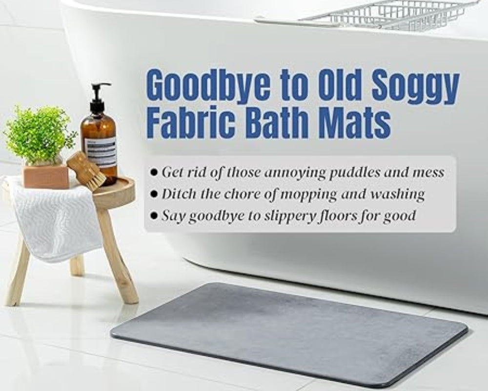 Say goodbye to puddles and slippery floors with Smiledrive® ultra-absorbent, quick-drying stone bath mat.