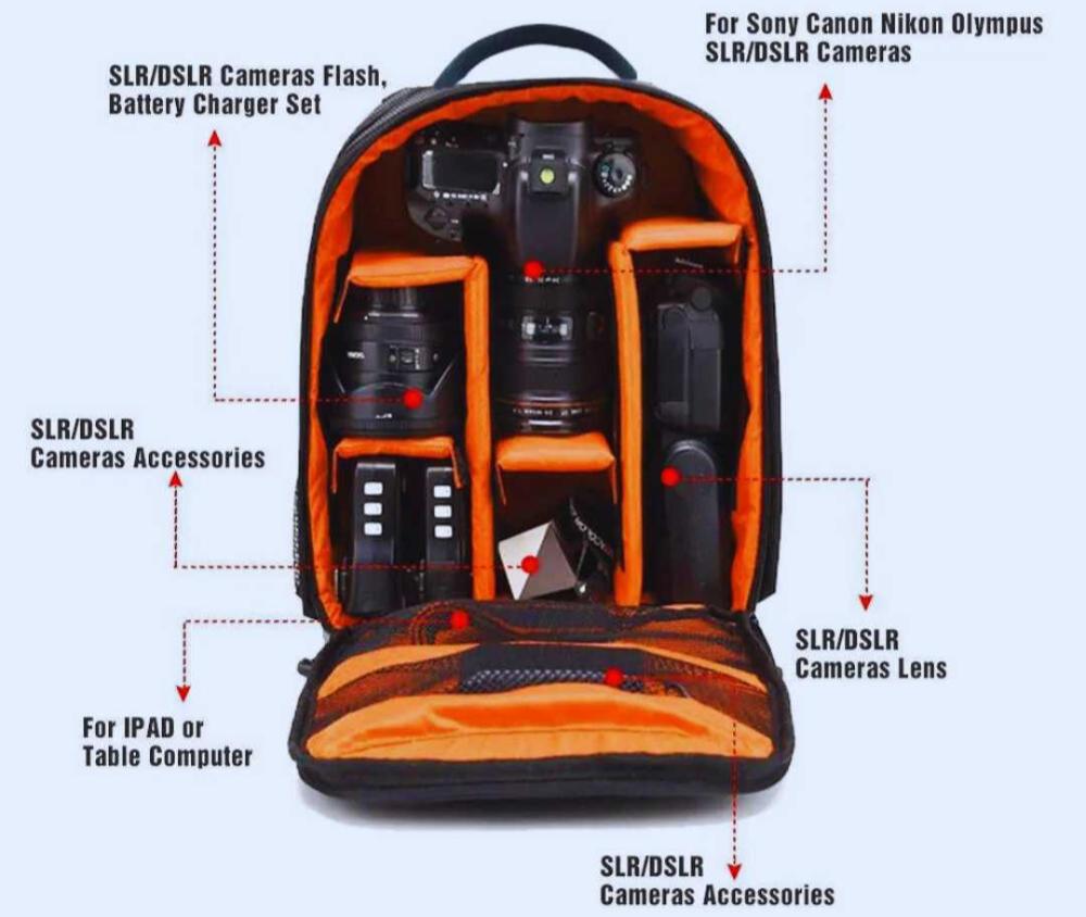 DSLR Camera Laptop Bag Backpack with Padded Adjustable Grids
