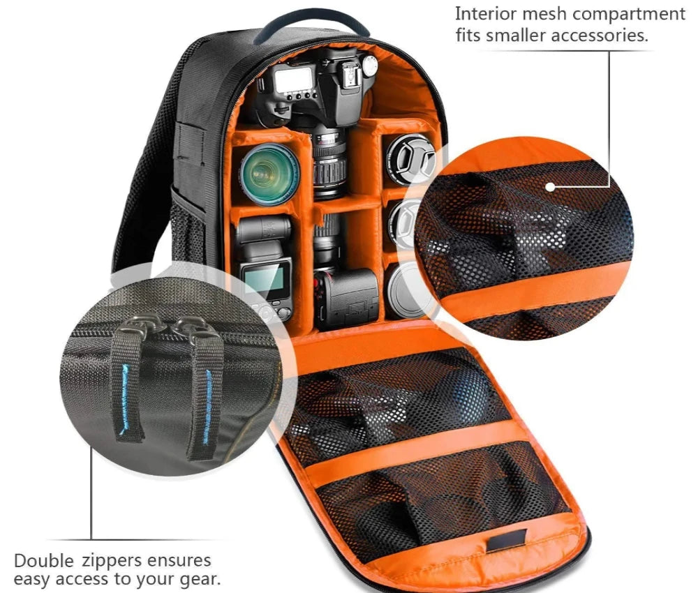 - ADJUSTABLE CUSTOMISABLE PADDED DIVIDERS WITH VARIOUS MESH POCKETS: You can make space according to your gear. Remove all the padded dividers if you want to use it as a regular backpack, just remove the dividers and carry your stuff. You can also carry cables, chargers, lens cleaners, etc in the zipper mesh pockets