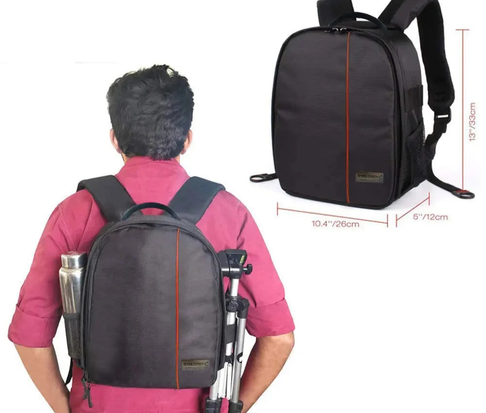 Whether you are an amateur or professional photographer, if you need to travel with camera equipments, then SMILEDRIVE® Waterproof DSLR Backpack is the perfect bag for you. It can carry your DSLR/SLR camera, lenses & accessories, tripod, water bottle, mobile charges, flashlight & much more. It is waterproof and comes with a rain cover and so, even if you are out and about, it will protect your expensive equipments.