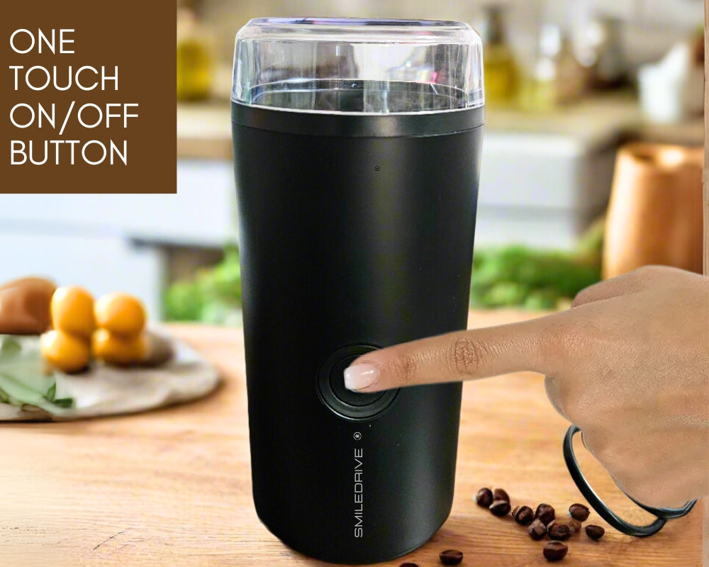 Experience the ultimate in coffee convenience with Smiledrive Electric Coffee Grinder. Simply add your favorite beans and let its powerful motor work magic, delivering freshly ground coffee in a matter of seconds. Featuring one-touch operation, compact design, and versatility for spice grinding, Smiledrive Electric grinder makes for a perfect addition to any coffee lover's kitchen.