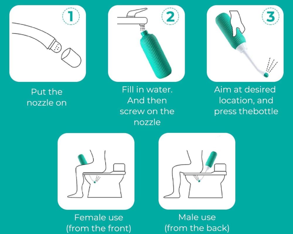 This environmentally friendly portable bidet works without any batteries and super convenient to carry with you.