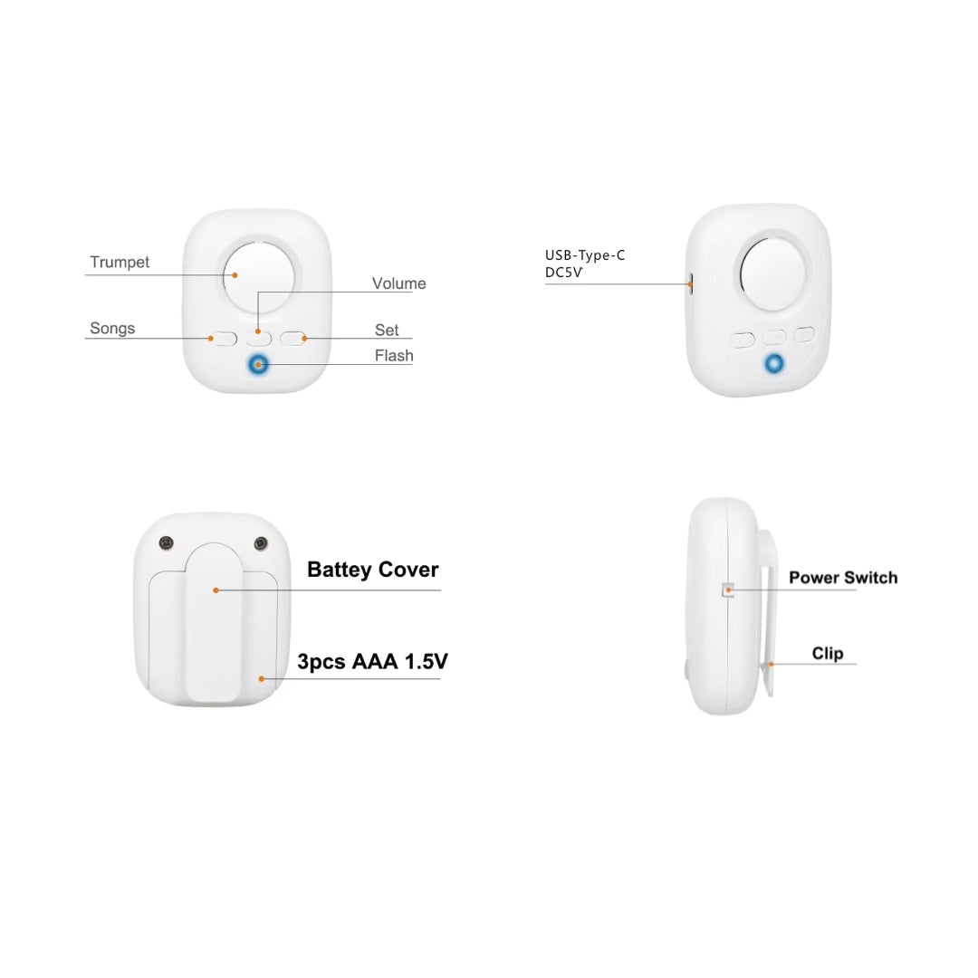 Easily adjust the sound with four volume levels, ranging from 0dB to 85dB, ensuring clear alerts in any environment. Choose from 38 unique ringtones for a personalized and pleasant notification experience.
