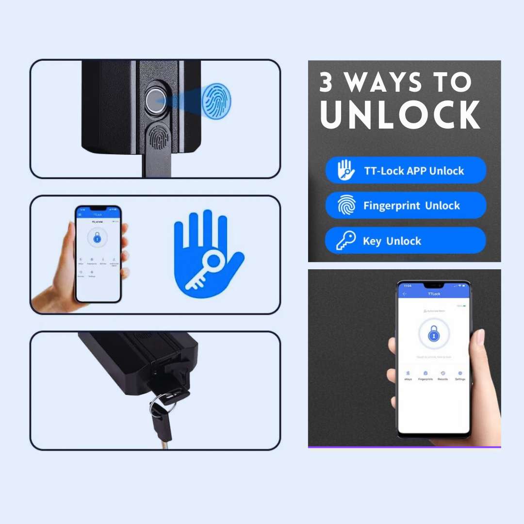 3 different ways to unlock. Also, the free-to-use App, fingerprints' registration and permission revocation ensure unparalleled convenience over conventional locks