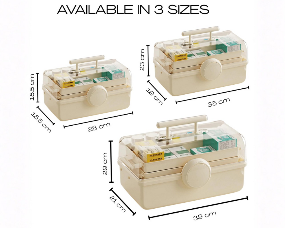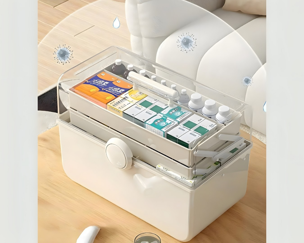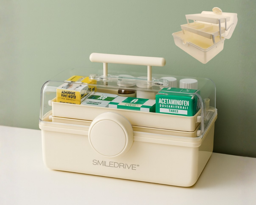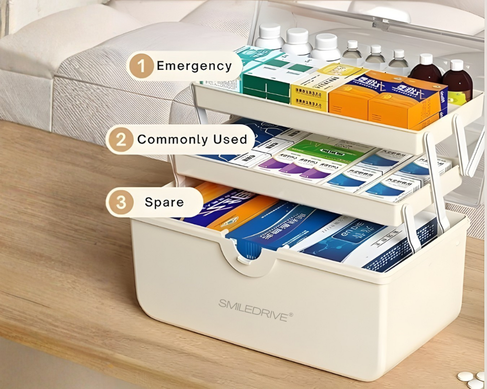 Keep your medical essentials neatly arranged with SMILEDRIVE’s 3-tier storage box featuring a clear lid, sturdy handle, and smart compartment design for effortless access and hygiene.